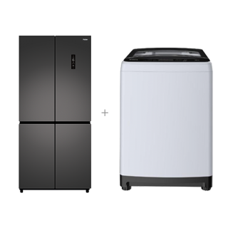 [위니아+하이얼] 웨이브 입체물살 세탁기 12kg 라이트 실버 + 4도어 냉장고 433L 스페이스 그레이 [BWF12WGS(A)+HRS445MNG]